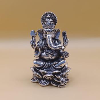 Handmade silver Ganesh idol with very fine finish and clear facial features. The God for auspicious